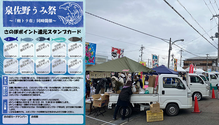 泉佐野うみ祭内において軽トラ市の運営及びさのぽ還元業務を実施。